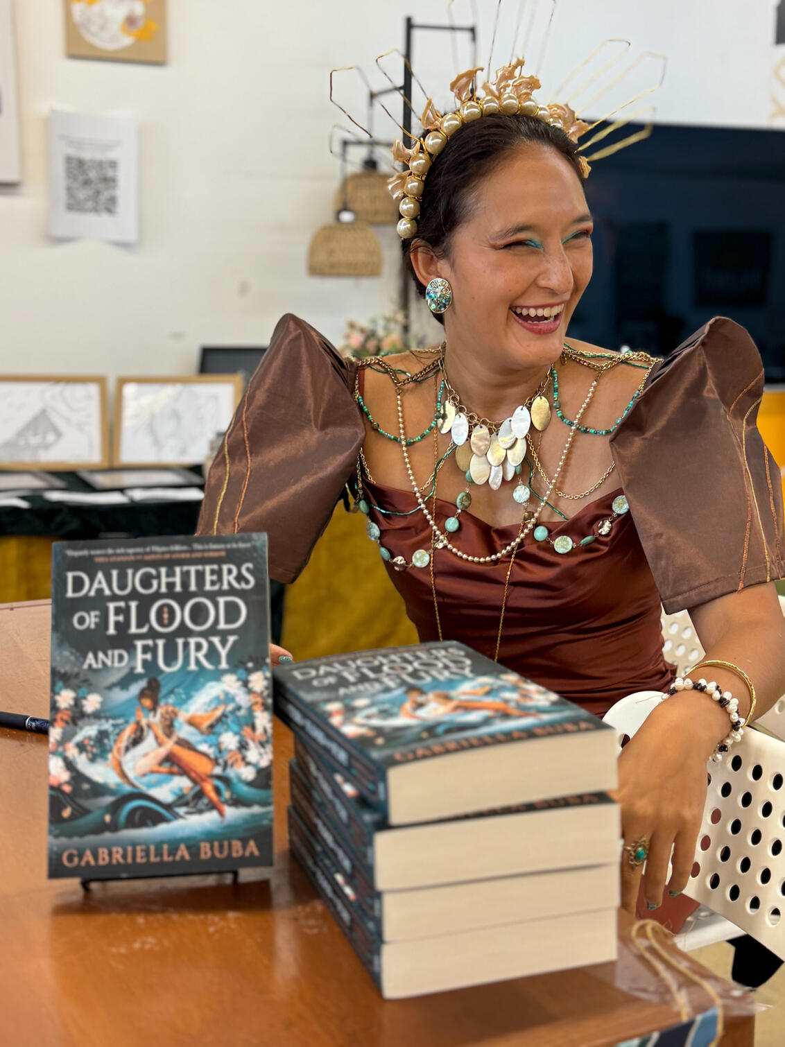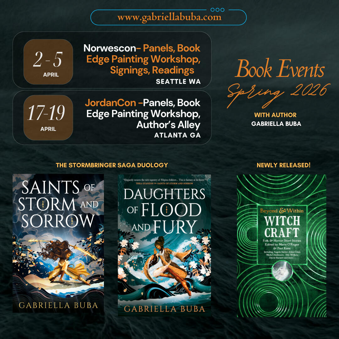 Gabriella Buba is a mixed Filipina-Czech author-illustrator and chemical engineer based in Texas who likes to keep explosive pyrophoric materials safely contained in pressure vessels or between the covers of her books. She writes epic fantasy for bold, bi, brown women who deserve to see their stories centered. Her debut SAINTS OF STORM AND SORROW, a Filipino-inspired epic fantasy, was shortlisted for the 2025 Aldiss Award for World Building in Speculative Fiction. The sequel DAUGHTERS OF FLOOD AND FURY was a top trending Spotify LGBTQ+ Audiobook title. Her work as part of the anthology Witchcraft: Folk Tales & Horror Short Stories edited by Marie O'Regan & Paul Kane was a #1 New Release on Amazon. She has a Gothic Novella set during the Japanese Occupation of Manila coming with Absinthe Books Fall of 2026.She has a Filipino Fantasy short stories in the anthologies Strange Religion: Speculative Fiction of Spirituality, Belief, & Practice & Of Stardust: A Queer Fantastical Anthology volume 1 & 2, Short stories placed with the Sci Phi Journal and PodCastle Fiction and essays on Filipino Identity in Prairie Fire Press and With Love: What We Wish We Knew About Being Queer and Filipino in America